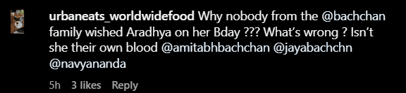 Another questioned, “Why nobody from the Bachchan family wished Aaradhya on her Bday??? What’s wrong? Isn’t she their own blood?”