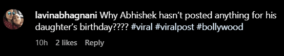 While the post radiated warmth and love, it was Abhishek Bachchan’s absence in the photos that caught everyone’s attention. Fans and followers flooded the comments section with questions and speculations.