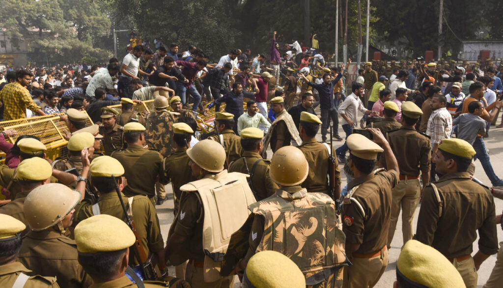 Police detained ‘miscreants’ who tried to infiltrate and provoke agitating students. Speaking to reporters, deputy commissioner of police (City) Abhishek Bharti said, “Some miscreants with criminal tendencies entered among 50-60 students and tried to stop the students who were communicating with the administration.”