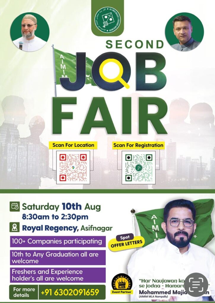 Hyderabad: The All India Majlis-e-Ittehadul Muslimeen (AIMIM) is organizing a job fair in Hyderabad on Saturday.