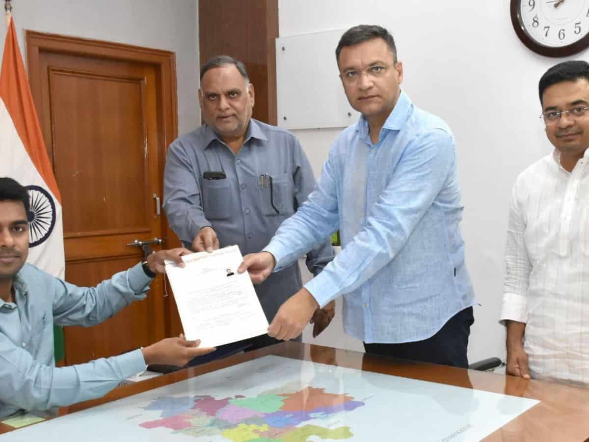 Gaddam Srinivas Yadav of BRS filed two sets of his nomination papers with the returning officer of Hyderabad on Monday.