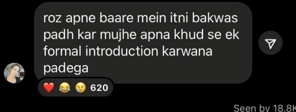 Taking to her Instagram, she slammed the reports and said, “Roz apne bare mein itni bakwas padh kar mujhe apna khud see ek format introducation karwana padega (After reading such rubbish about myself everyday, I may have to formally introduce myself ot myself,” she wrote.