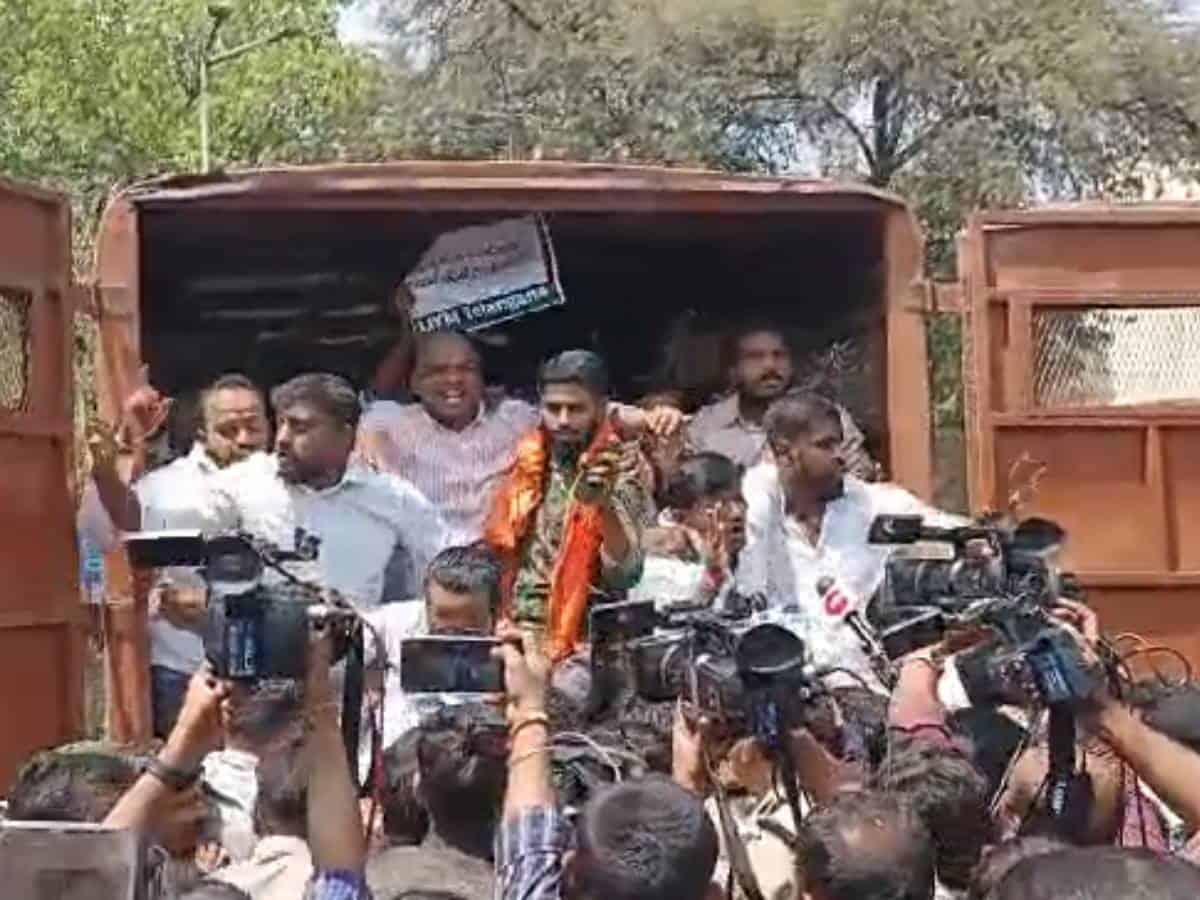 Hyderabad: Bharatiya Janata Party (BJP) MLA Yeleti Mahender Reddy on Tuesday, March 18, held a protest against the Congress government demanding it to stop the sale of university lands. The protest comes days after the state government announced the sale of about 400 acres of land in Kancha Gachibowli that many believe is part of the University of Hyderabad (UoH) campus.