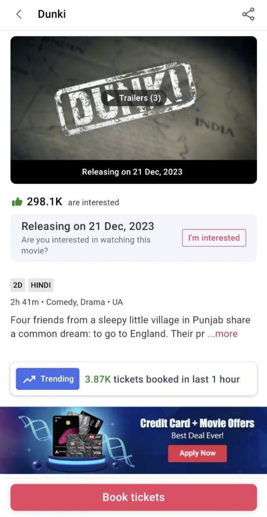 At the time of filing this report, morethan 3.39K tickets were sold in Hyderabad. As per BookMyShow morethan 298.1 K people have shown interest in watching the movie.