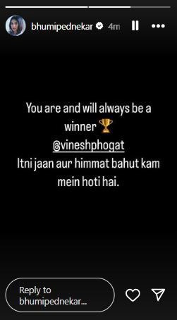 Bhumi Pednekar also shared her sentiments on Instagram, stating, “You are and will always be a winner @vineshphogat Itni jaan aur himmat bahut kam mein hoti hai,” highlighting Phogat’s courage and strength.