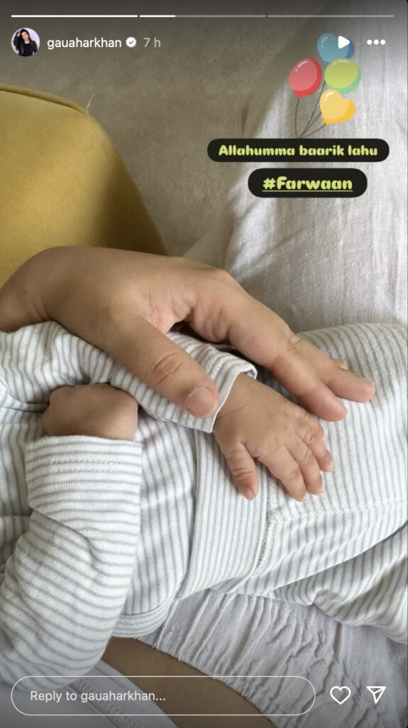 Sharing a picture of him, without revealing his face, on her social media, Gauahar wrote ‘May Allah Bless’ in Arabic, along with the baby’s name, Farwaan. The actress welcomed her second baby on September 1st this year. The actress, along with her husband, Zaid Darbar, had announced the pregnancy with an adorable post on social media in May this year.