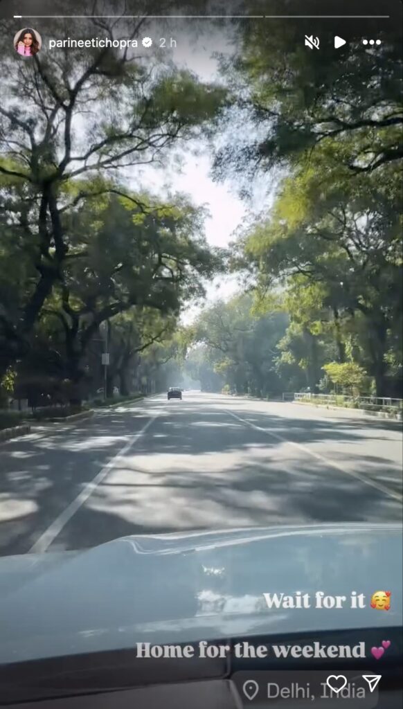 Parineeti took to Instagram stories, where she shared a video of herself in the car driving to her “home”.