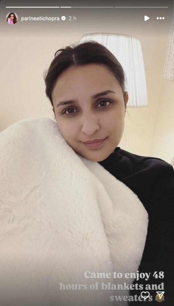 Parineeti, who is married to politician Raghav Chaddha, wrote: “Came to enjoy 48 hours of blankets and sweaters.”