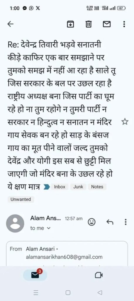 According to reports, Tahar Singh and Mishra sent death threats to Yogi and Ram Mandir, special task force additional director general of police (ADG) Amitabh Yash, and a social activist Devendra Tiwari under the pseudonym name ‘Zubair Khan’ through email IDs ‘alamansarikhan608@gmail.com’ and ‘zubairkhanisi199@gmail.com’.