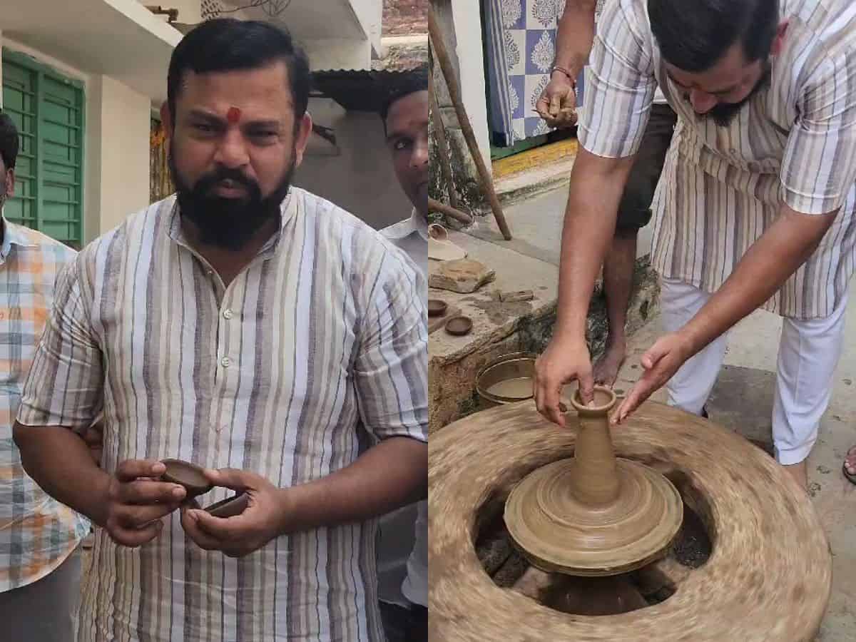 Hyderabad: T Raja Singh Goshamahal MLA on Friday went around promoting handmade diyas by the local porter community. In a video message, the MLA said the ‘kunwar’ (porter) community struggles hard to make diyas available to the people for Deepavali.