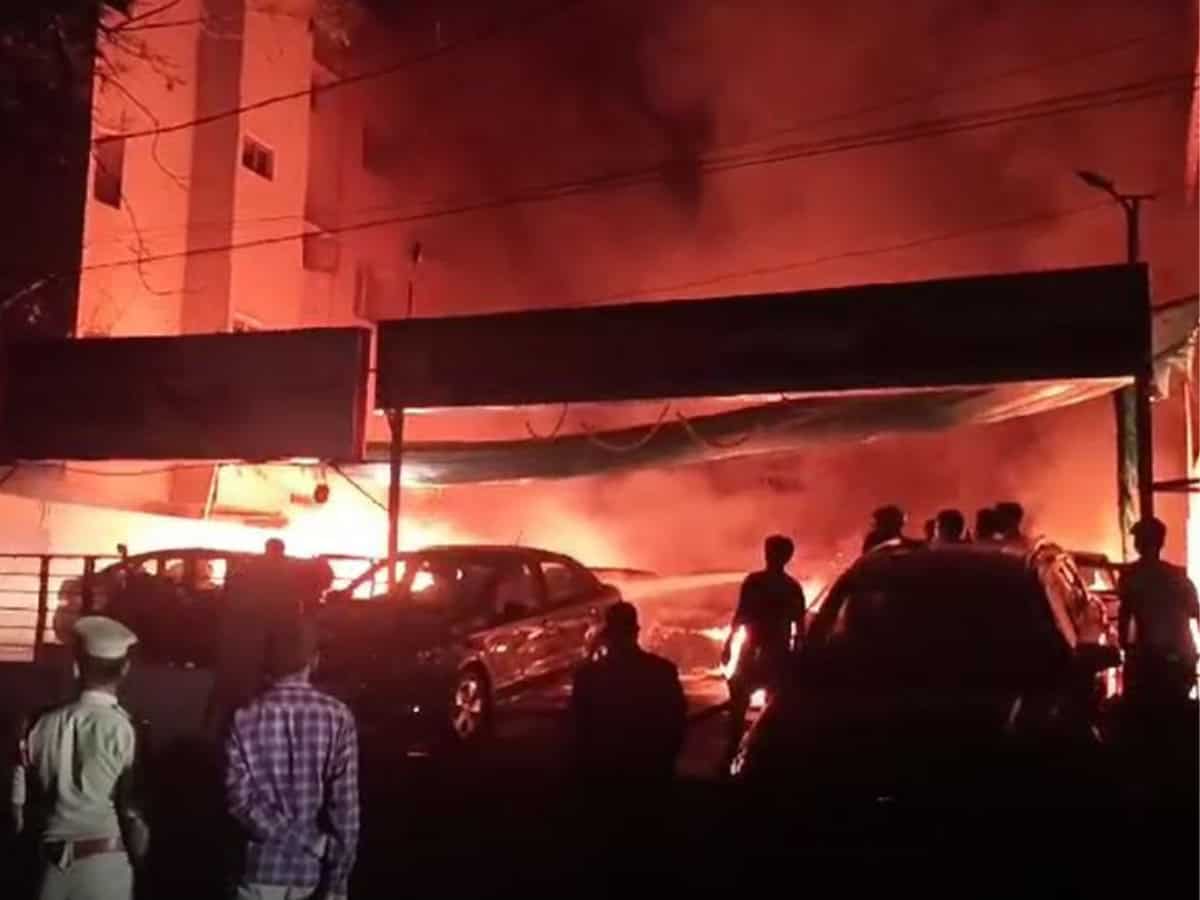 Hyderabad: A massive fire occurred at Sri Nani Cars Consultant in Sri Nagar Colony, Yousufguda resulting in substantial damage to the business.