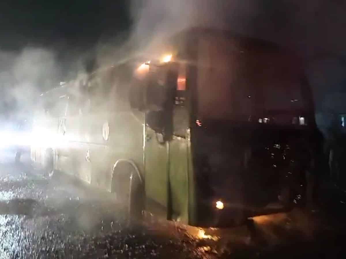 Hyderabad: More than 40 passengers of a state-owned Road Transport Corporation (RTC) bus had a narrow escape when it caught fire at Pedda Amberpet near Outer Ring Road (ORR), Hyderabad on Friday.