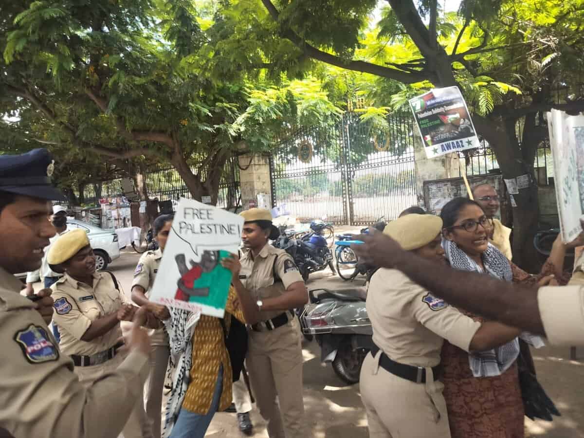Hyderabad: Peaceful demonstrators of Pro-Palestine protest were forcibly detained by Hyderabad police on Tuesday, October 7.