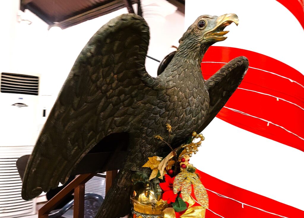 The interior of St. John’s exudes an aura of timelessness. Pristine white walls, polished pews, and brass plaques commemorating British soldiers create a serene ambiance. The altar, located to the east, is adorned with a simple yet elegant depiction of John the Baptist, placed high above—an understated nod to the church’s namesake.The church’s baptismal font, (that is the right spelling) carved from a single block of marble and mounted on a finely dressed granite base, is another highlight. Equally interesting is a metallic eagle-shaped podium for holding large tomes for reading or reciting hymns.