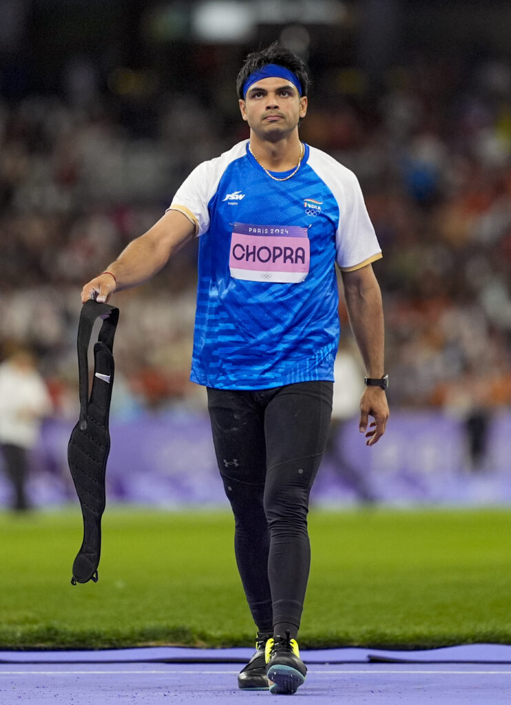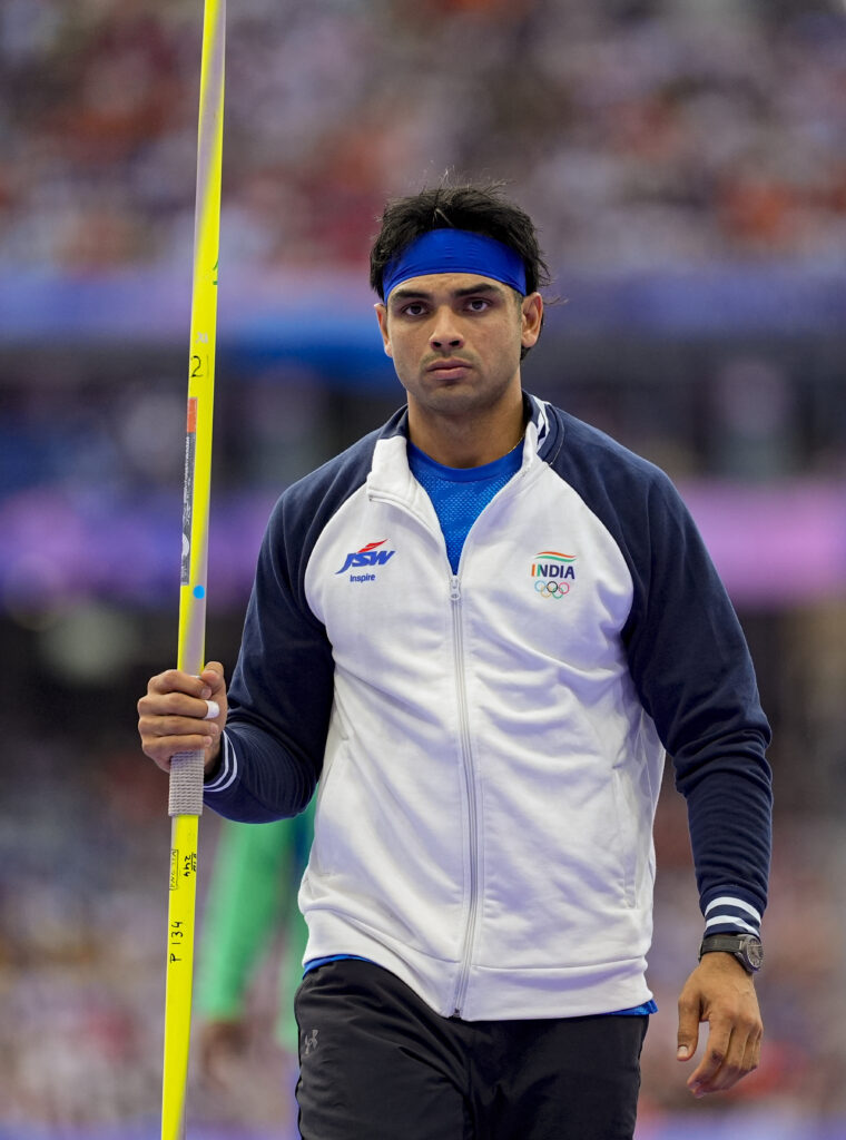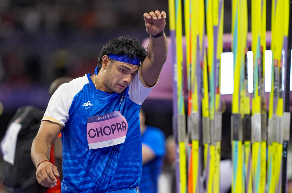 Paris: India’s Neeraj Chopra before the start of the men’s javelin throw final at the 2024 Summer Olympics, in Paris, France, Thursday, Aug. 8, 2024. (PTI Photo/Ravi Choudhary)