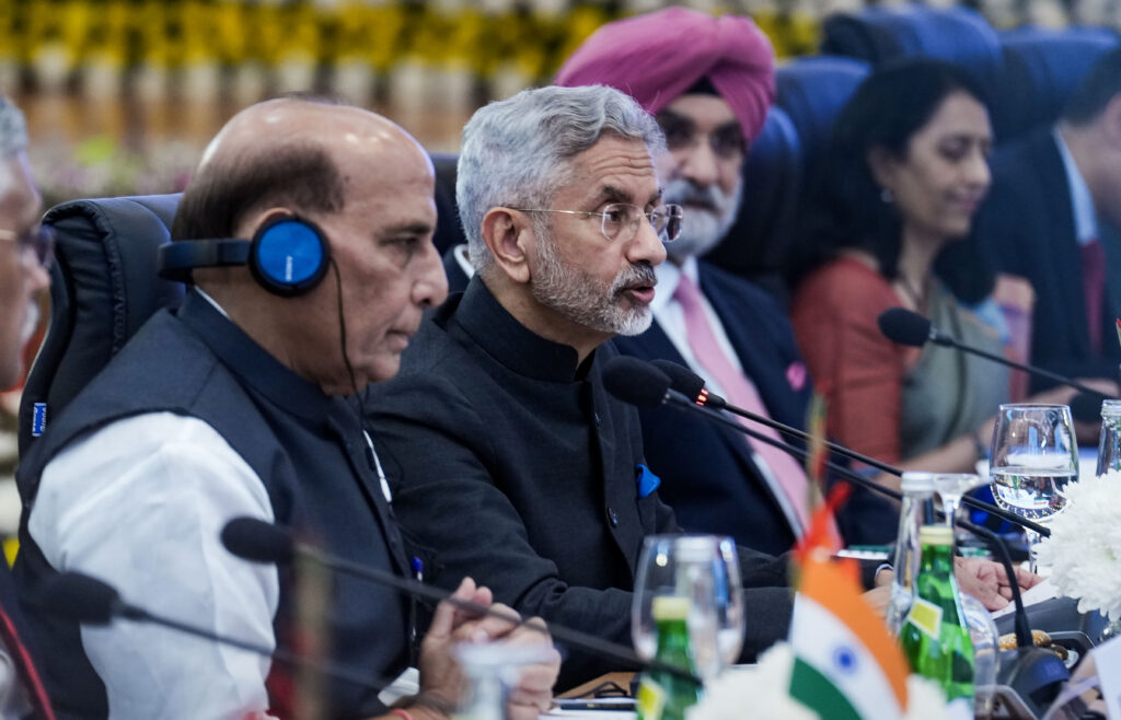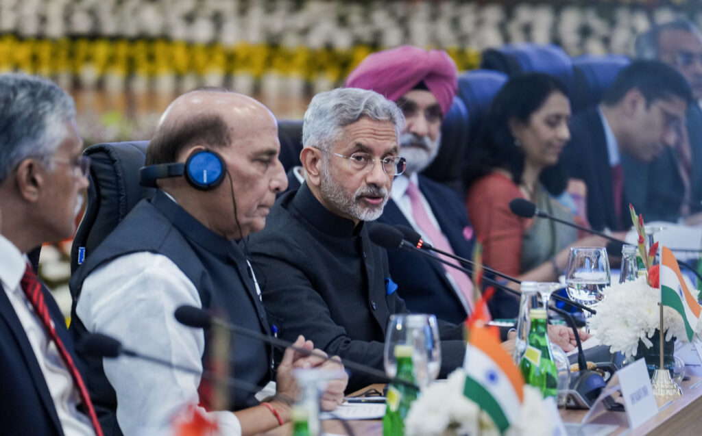 New Delhi: Defence Minister Rajnath Singh and External Affairs Minister S. Jaishankar during the 5th India-US 2+2 Ministerial Dialogue, at Sushma Swaraj Bhavan, in New Delhi, Friday, Nov. 10, 2023. (PTI Photo/Kamal Singh)