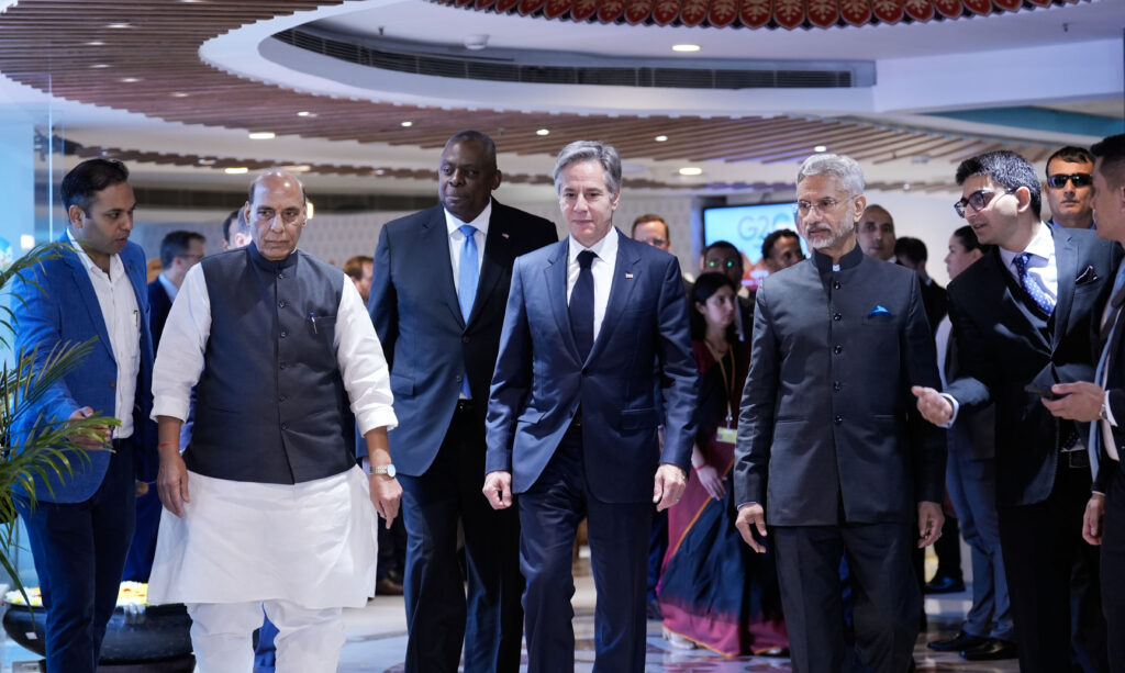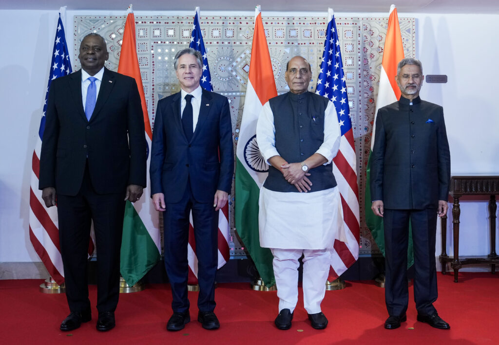 New Delhi: US Secretary of State Antony Blinken and Secretary of Defence Lloyd Austin during the 5th India-US 2+2 Ministerial Dialogue, at Sushma Swaraj Bhavan, in New Delhi, Friday, Nov. 10, 2023. (PTI Photo/Kamal Singh)