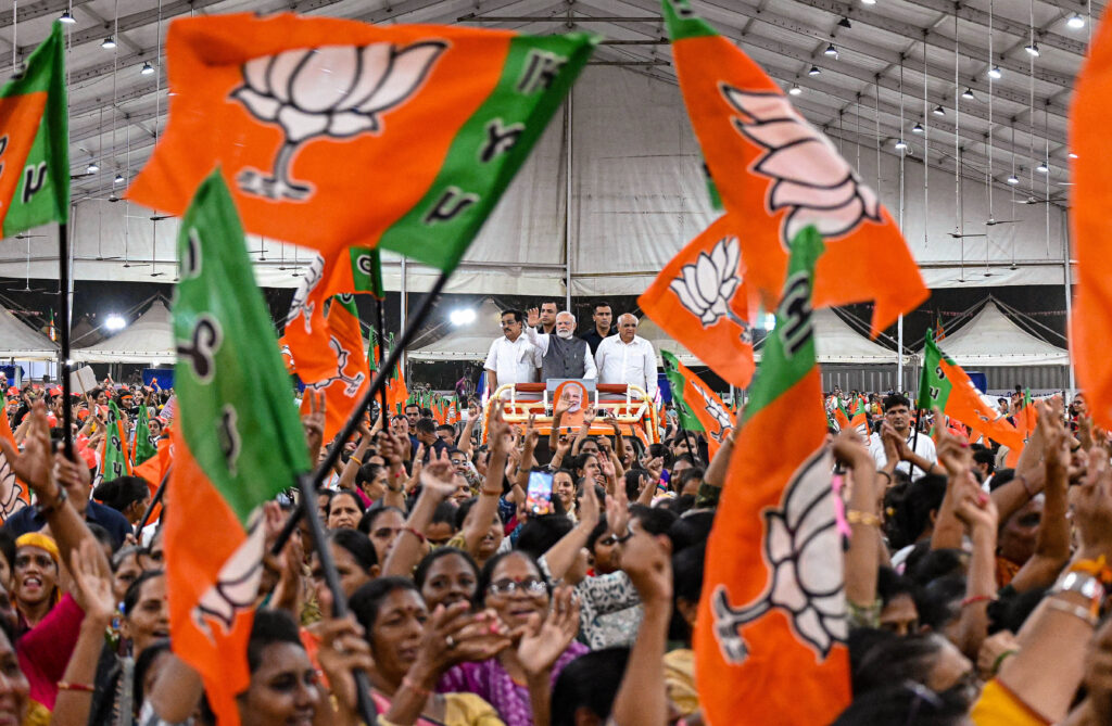 Ahmedabad: BJP women supporters attend ‘Nari Shakti Vandan – Abhinandan’ event addressed by PM Narendra Modi, in Ahmedabad, Tuesday, Sept. 26, 2023. (PTI Photo)