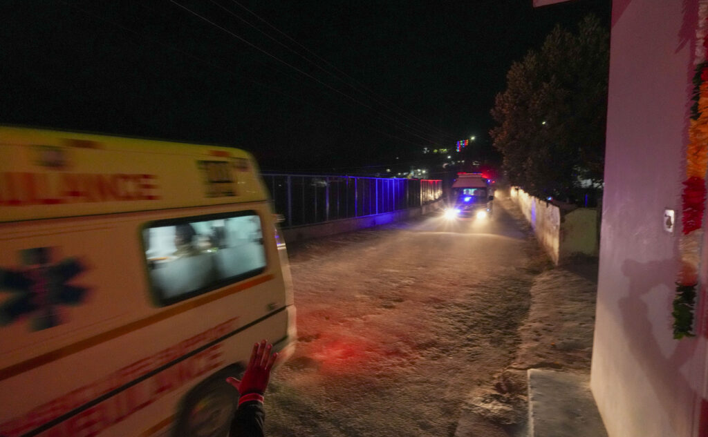 Chinyalisaur: Ambulances with rescued workers on their way to Chinyalisaur community health centre for their treatment from the collapsed Silkyara Tunnel, in Chinyalisaur, Tuesday, Nov. 28, 2023. (PTI Photo/Arun Sharma)