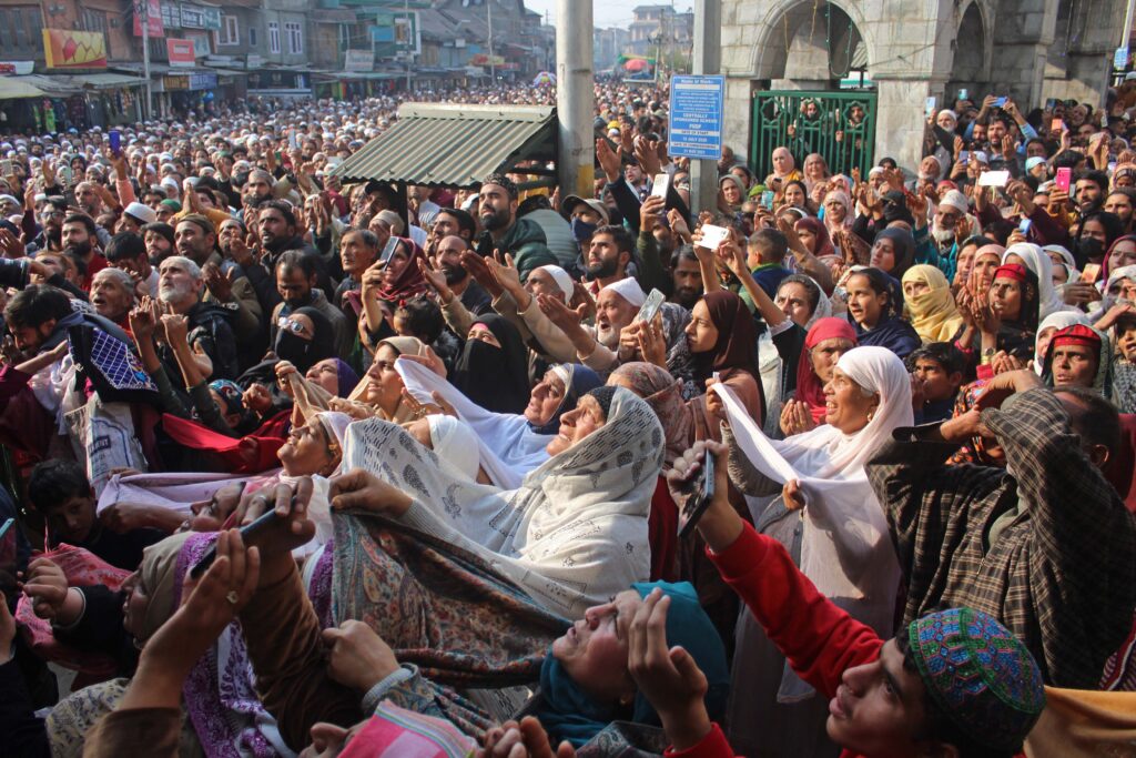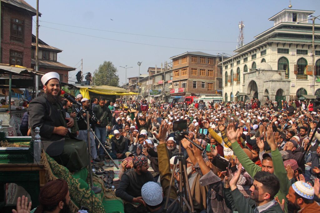 Srinagar: Thousands of devotees offered Friday prayers at Khanyar, Srinagar to mark the Urs of a sufi saint Sheikh Abdul Qadir Jeelani.