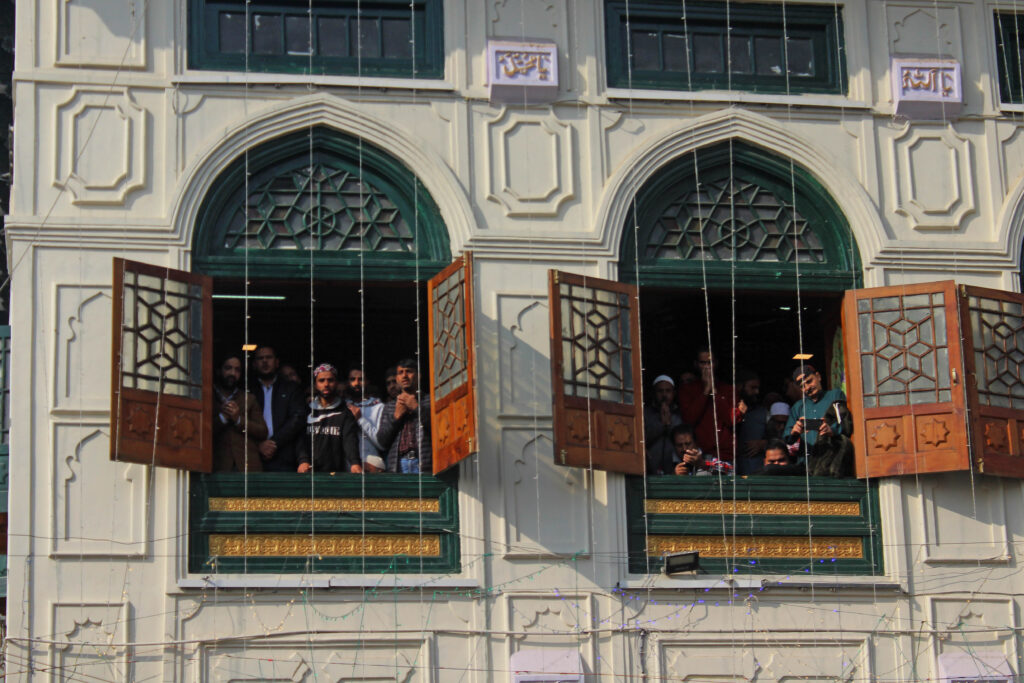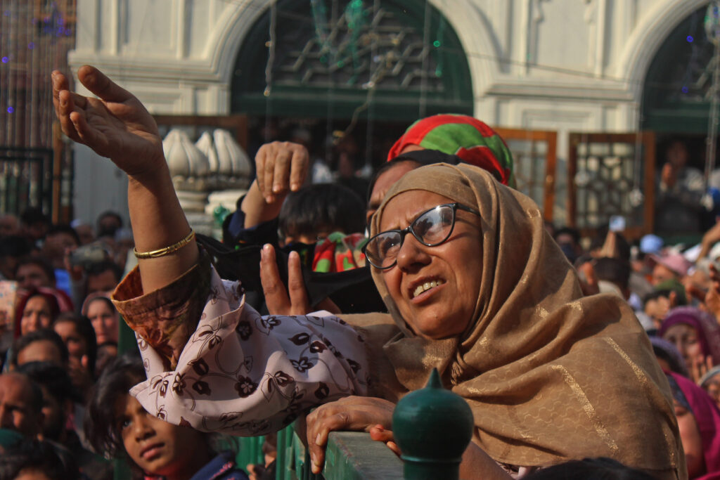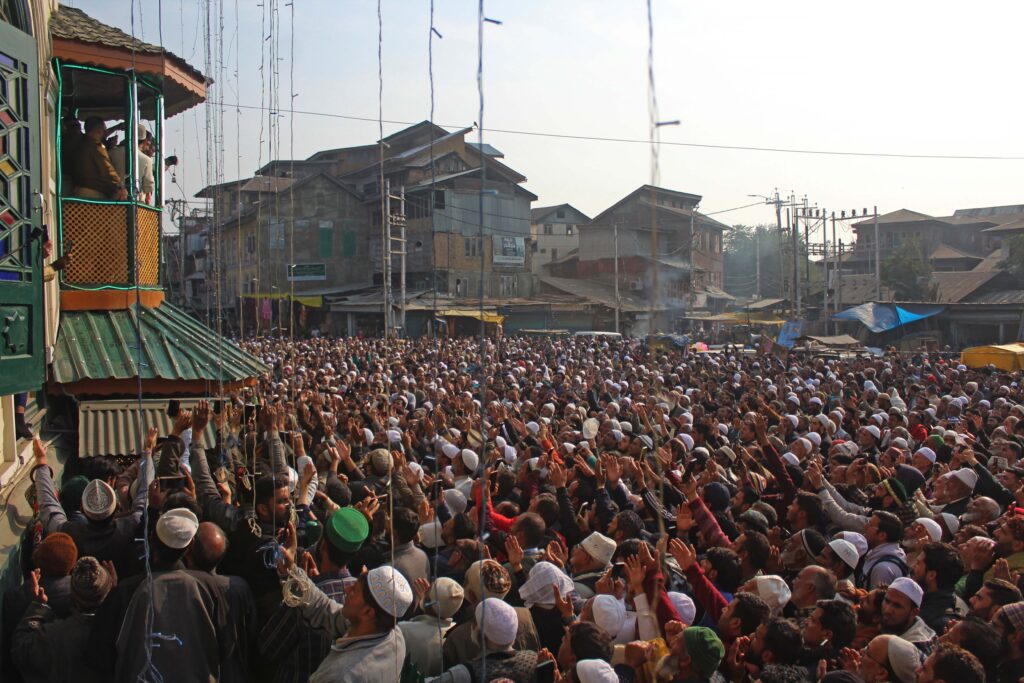 Devotees including men, women and children thronged to the shrine, called Dastgeer Sahib, in order to catch a glimpse of the holy relic, which is believed to be a hair strand from the beard of Sheikh Abdul Qadir Jeelani whose mausoleum is situated at Baghdad in Iraq.