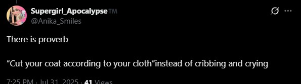 One X user has commented, “There is proverb- ‘Cut your coat according to your cloth,’ instead of cribbing and crying.’”
