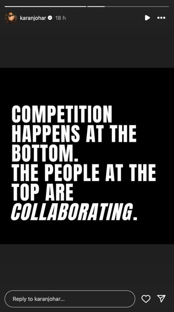 On Sunday, KJo took to the Stories section of his Instagram, and shared a note. He wrote, “Competition happens at the bottom. The people at the top are collaborating”.