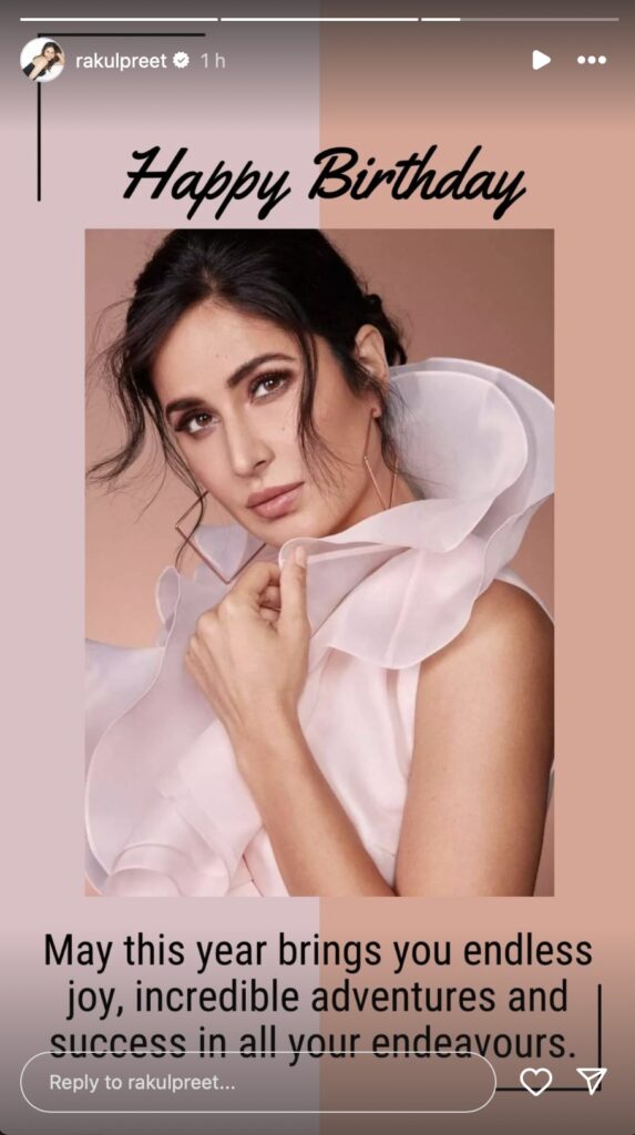 Rakul Preet Singh also shared a photo of Katrina in her Stories section and said: “May this year bring you endless joy, incredible adventures, and success in all your endeavours.”