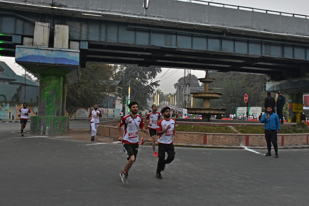 The marathon was flagged off by chief minister Omar Abdullah who was accompanied by the Bollywood actor Sunil Shetty from Polo View Street at around 6 am. The event was organised by the department of tourism with the aim to show the world that the situation has improved in the valley.