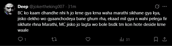 One of the MNS workers is heard threatening the employee, saying, “If you want to live and work in Mumbai, you have to speak in Marathi. Otherwise, you can go to your village.”