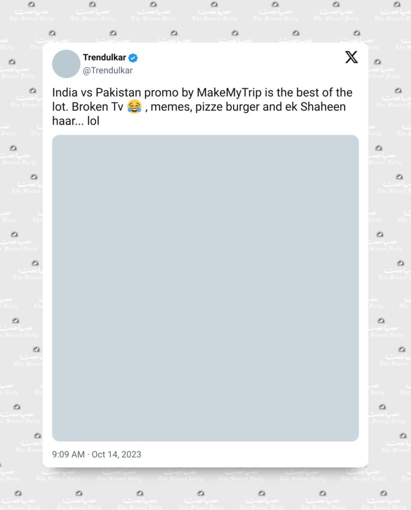 However, there were many who supported the ad. “India vs Pakistan promo by MakeMyTrip is the best of the lot. Broken Tv memes, pizze burger and ek Shaheen haar… lol,” said one X user.