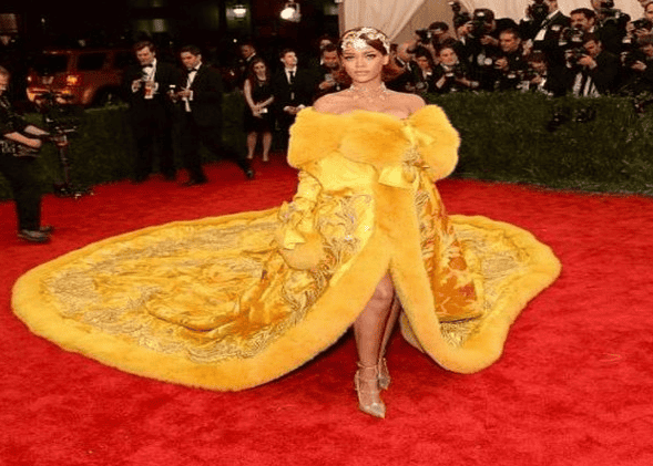 No discussion of iconic Met Gala looks would be complete without mentioning Rihanna. The pop icon has consistently stolen the show with her daring fashion choices. In 2015, she made headlines in a breathtaking yellow Guo Pei gown, complete with an extravagant train that seemed to stretch for miles. The stunning ensemble solidified Rihanna’s status as a fashion trailblazer and set the bar high for future Met Gala appearances.