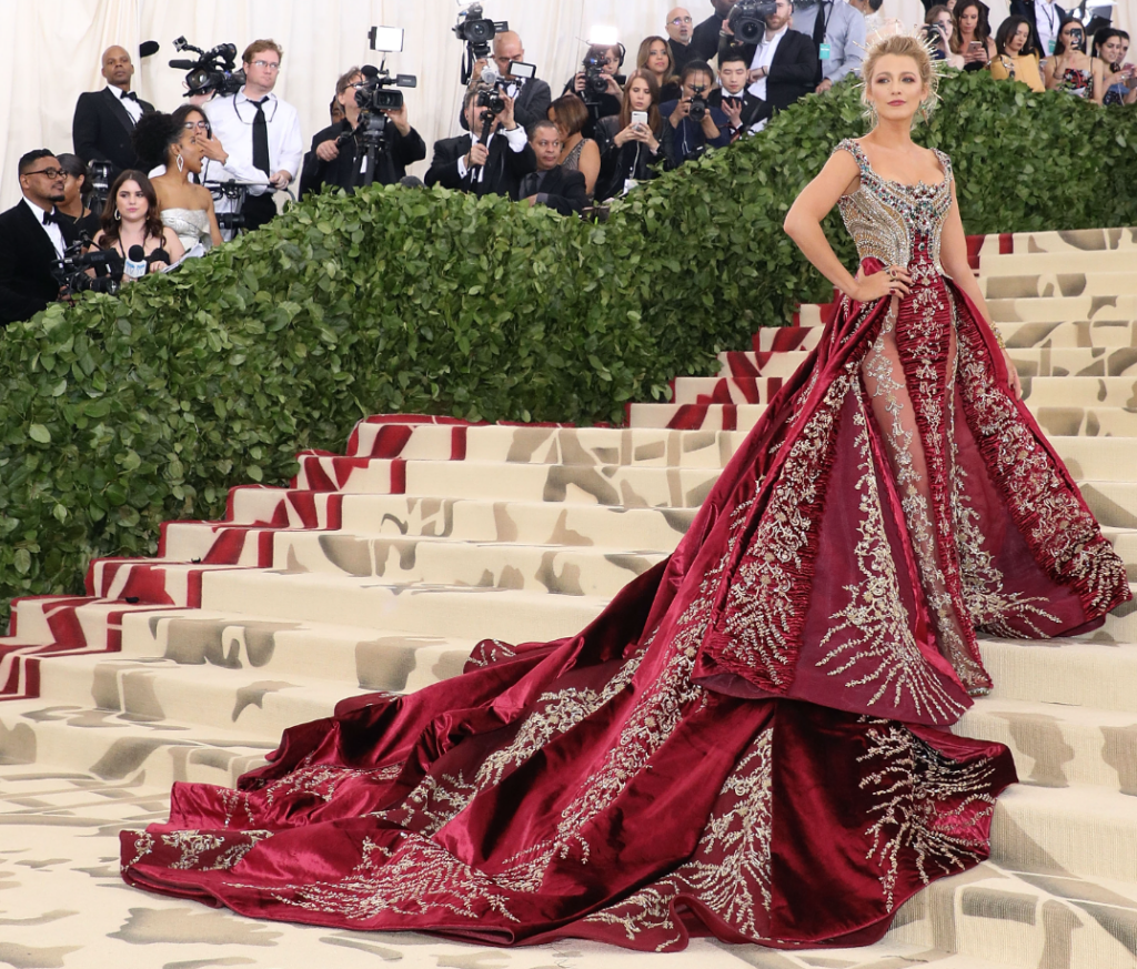 Blake Lively made a regal statement at the 2018 Met Gala in a Versace gown adorned with intricate gold embellishments and a dramatic train. With its ornate detailing and old Hollywood glamour, Blake’s ensemble evoked the grandeur of a bygone era.
