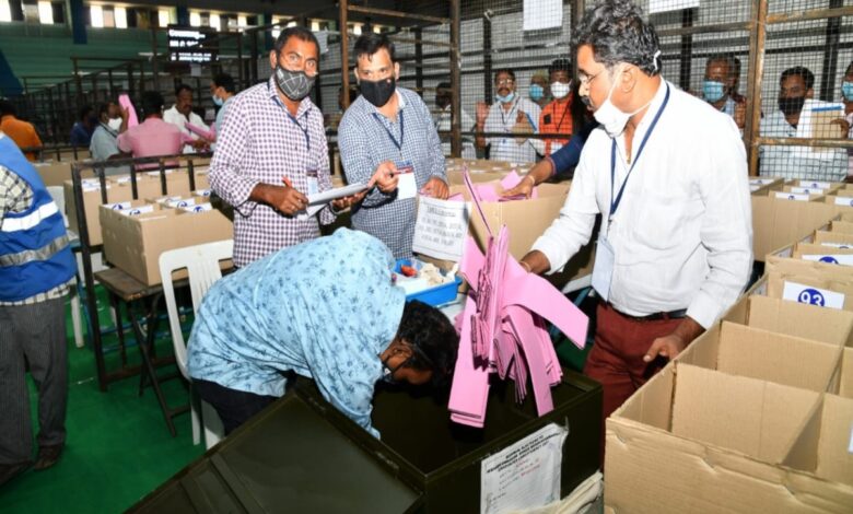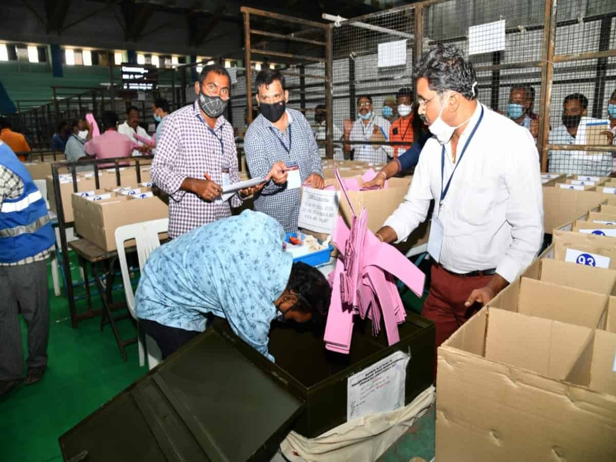 Counting is taking place at Saroornagar Indoor Stadium in Hyderabad and Telangana State Warehousing Corporation warehouse at Arjalabavi in Nalgonda. It began at 8 am on Wednesday.