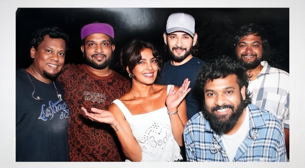 Finally, from the sets of #SSMB29, we have the first-ever photo of Mahesh and Priyanka together, along with the crew. The picture is full of happy vibes and shows the amazing energy on set.