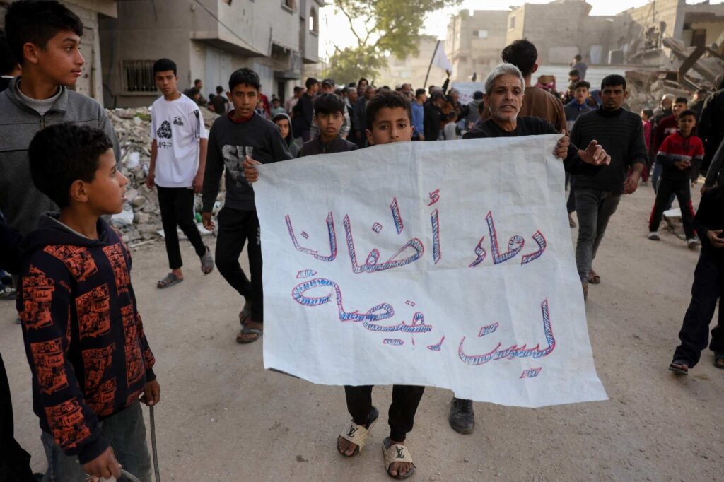 People held signs saying “Stop the war,” “We refuse to die,” and “The blood of our children is not cheap.”