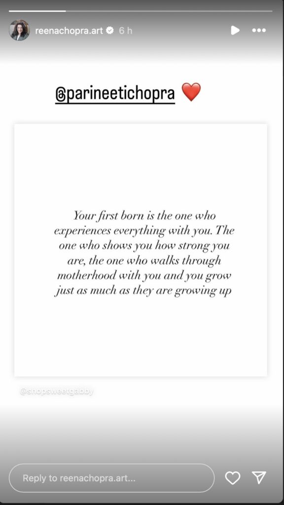 Reena, who is a travel blogger and artist, took to her Instagram story, where she has 32.2K followers, and shared a touching message about firstborn children.