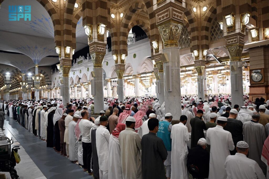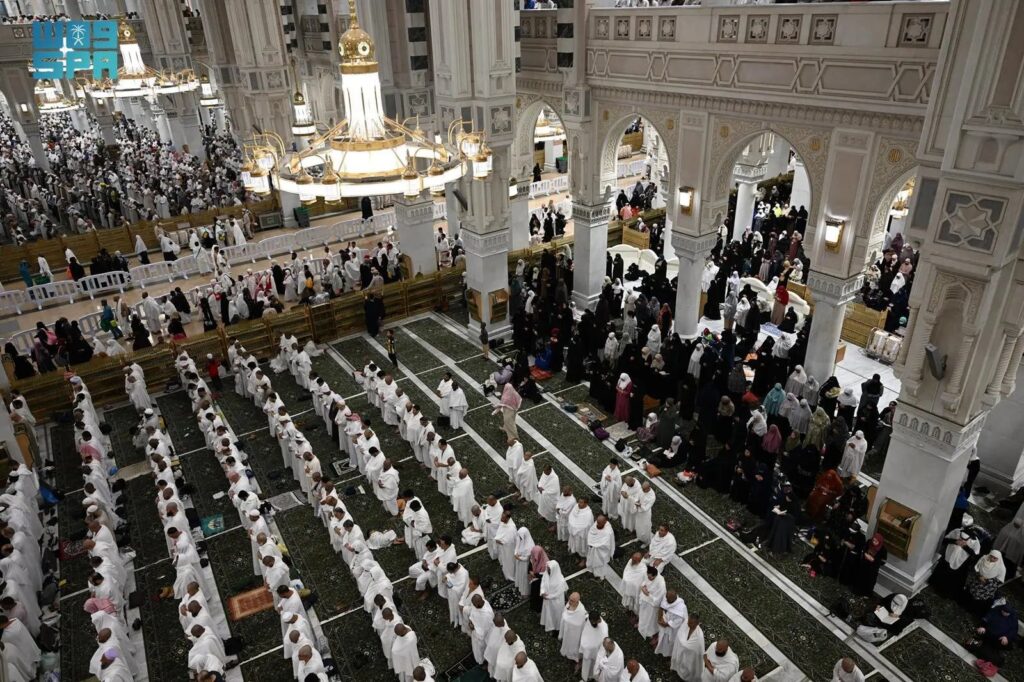 Prayer halls at the Two Holy Mosques were prepared to accommodate large numbers of worshippers, with trained guidance teams (walking guides) assisting visitors and answering inquiries in multiple languages.