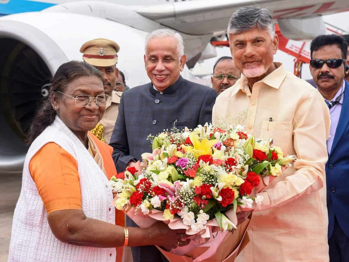 She was received by Governor of Andhra Pradesh S. Abdul Nazeer and Chief Minister N. Chandrababu Naidu.