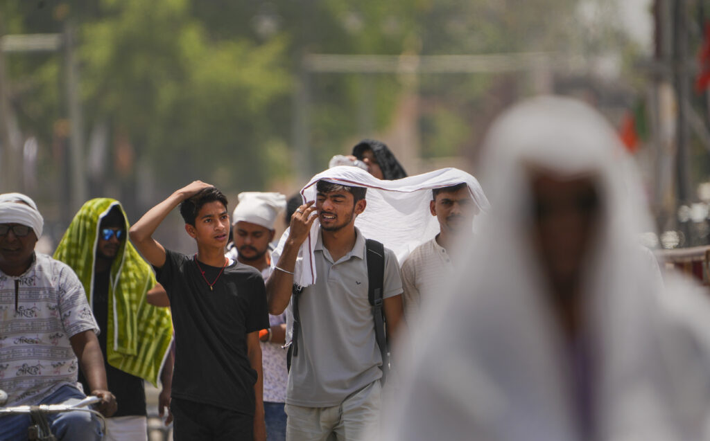 Ayodhya: People on a hot summer day ahead of Prime Minister Narendra Modis roadshow for the Lok Sabha elections, in Ayodhya, Sunday, May 5, 2024. (PTI Photo/Arun Sharma)