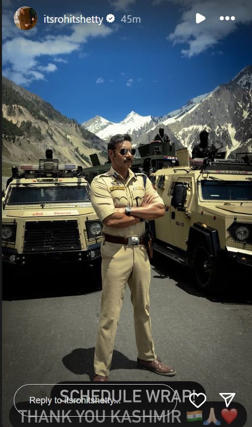 Taking to Instagram, Rohit shared pictures of actor Ajay Devgn from the sets in Kashmir and wrote, “Schedule wrap! Thank you Kashmir.”