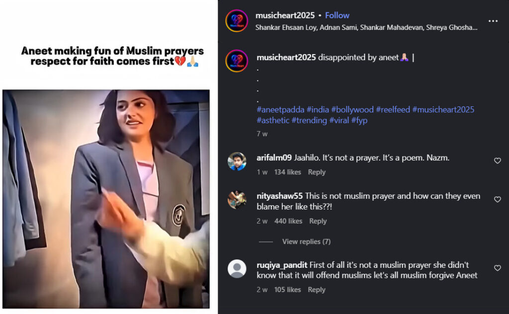 Aneet Padda has found herself at the center of controversy after an old video of the young star singing the famous Urdu poem “Lab Pe Aati Hai Dua” like a song has gone viral, sparking mixed reactions online. One Instagram user shared the video and wrote, “Disasspointed by Aneet”.