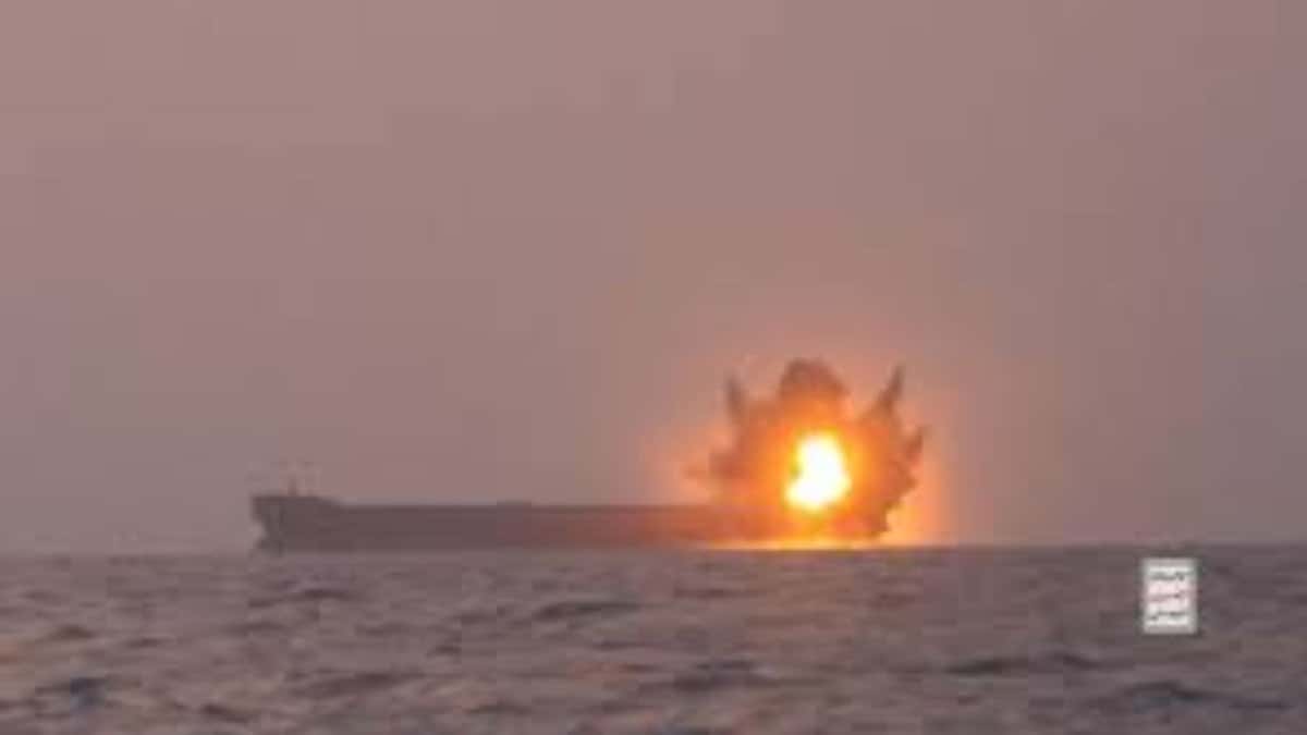 It later said the ship was on fire after being “struck by unknown projectiles”.