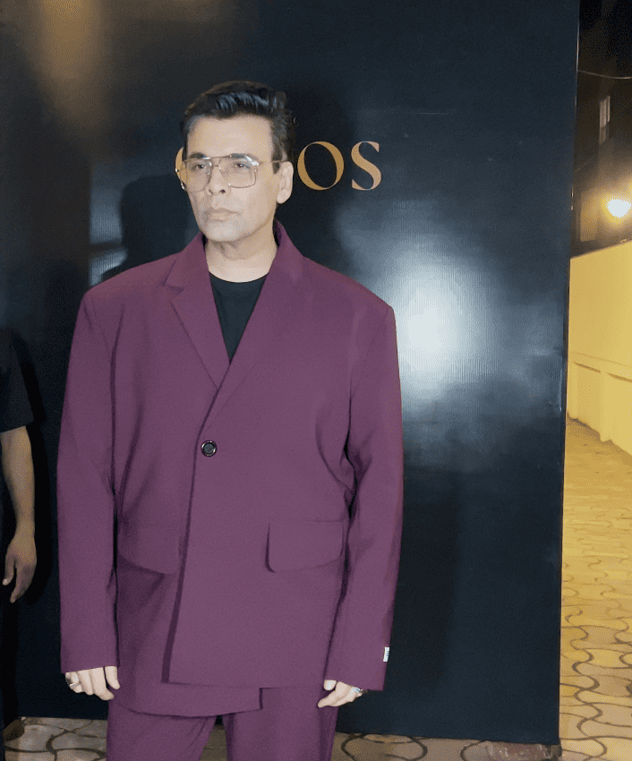 Filmmaker Karan Johar opted for an oversized wine-coloured jacket and matching trousers for the occasion.