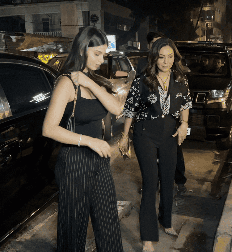 SRK’s wife Gauri Khan and daughter Suhana Khan also attended the party. The mother-daughter duo was seen twinning in black. Gauri wore a printed black shirt with black trousers, while Suhana was in a black top with striped pants.