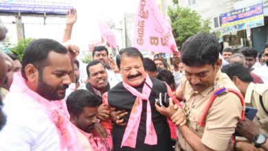BRS cadres protest in Siddipet against CBI inquiry into Kaleshwaram Project