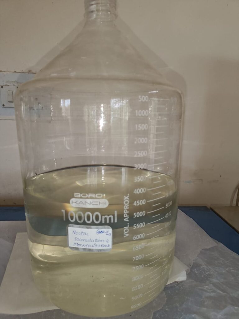 He uses the peel and pulp of Red Banana, converting it into a sugar solution (nectar) rich in amino acids, vitamins and minerals.