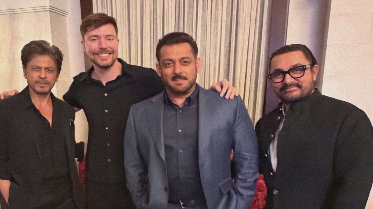 The viral photo, taken at the Joy Forum 2025 in Riyadh, Saudi Arabia, shows MrBeast posing with the three Khans. In the picture, Shah Rukh and Salman look dapper in tailored suits, while Aamir stands out in a classy black kurta paired with white pants. MrBeast keeps it stylish in an all-black outfit and adds a playful caption: “Hey India, should we all do something together?” This cryptic line immediately sent fans into a frenzy, fueling rumors of a possible collaboration.