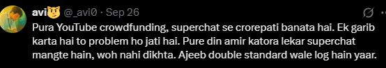 @avi0 said, “Youtubers become rich through crowd funding but when a poor person does it, it becomes a problem”