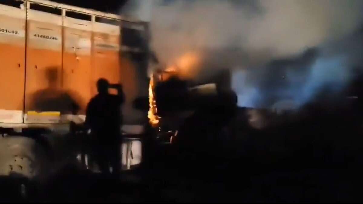 In an accident, three people were burnt alive after two lorries collided head-on and caught fire near Ellampeta stage on the Khammam-Warangal National Highway in Telangana.